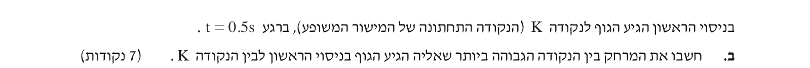 מגרף א' ניתן לראות שהגוף נעצר ברגע t=0.2s , נתון שברגע  t=0.5s הגוף מגיע לנקודה K.