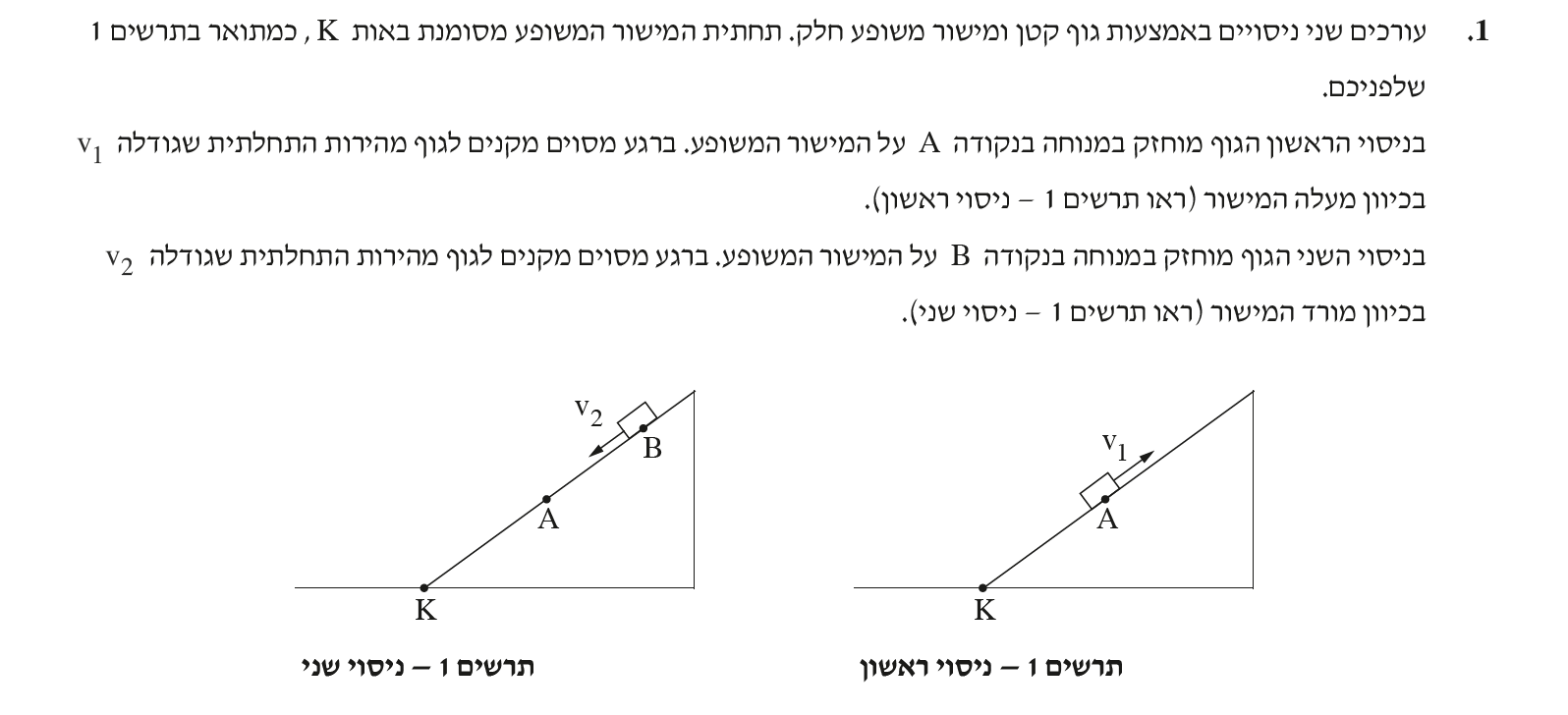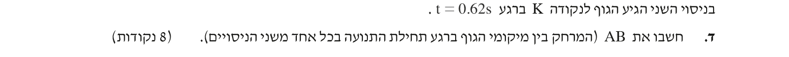 יש משמעות לנקודות A ו- K בניסוי הראשון, לכן הפתרון מבוסס תנועת הגוף בניסוי הראשון.