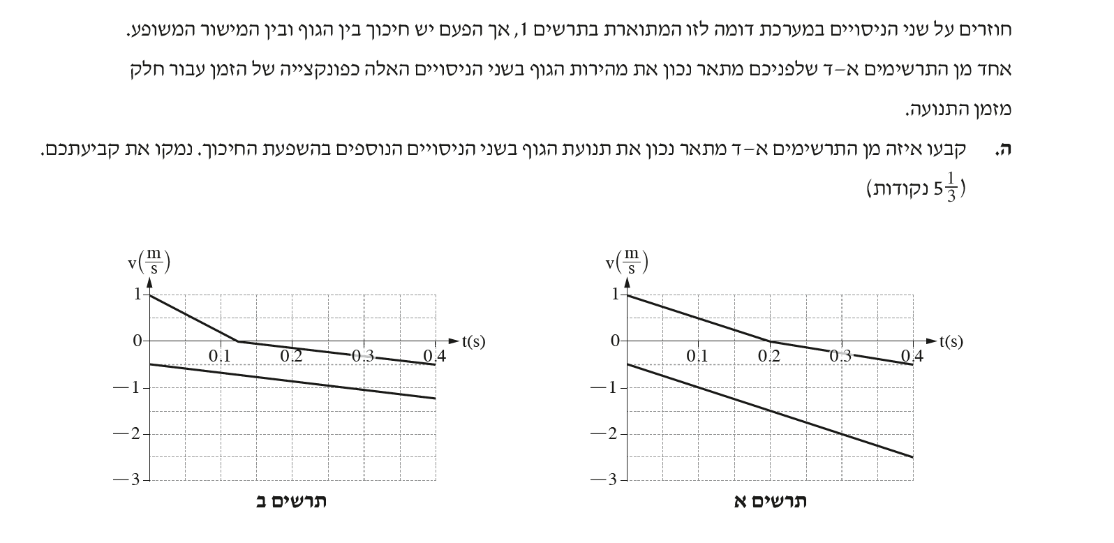 לכן התרשים המתאר נכון את תנועת הגוף השני הניסויים הוא תרשים ב'.