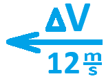 נמצא תחילה את וקטור שינוי המהירות «math xmlns=¨http://www.w3.org/1998/Math/MathML¨»«mover mathcolor=¨#0000FF¨»«mrow»«mo mathvariant=¨bold¨»§#8710;«/mo»«mi mathvariant=¨bold¨»V«/mi»«/mrow»«mo mathvariant=¨bold¨»§#8594;«/mo»«/mover»«/math»:
