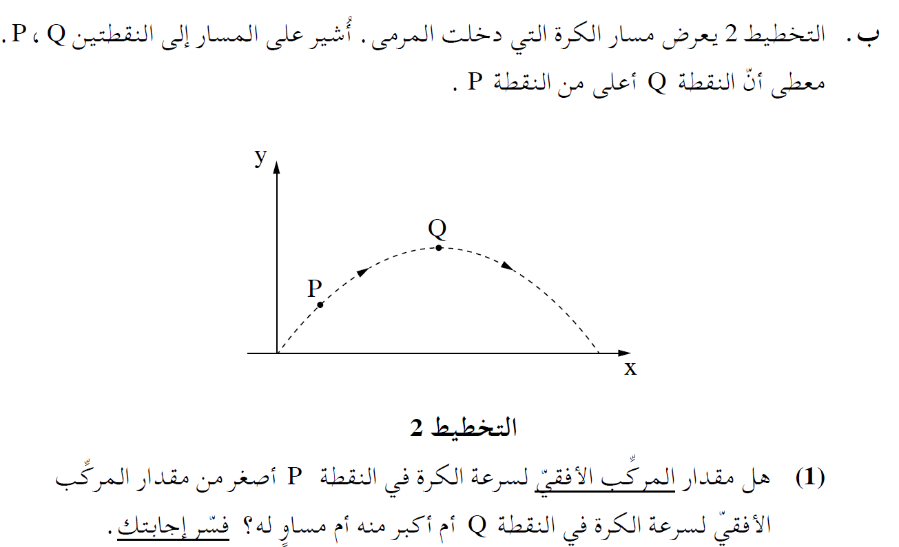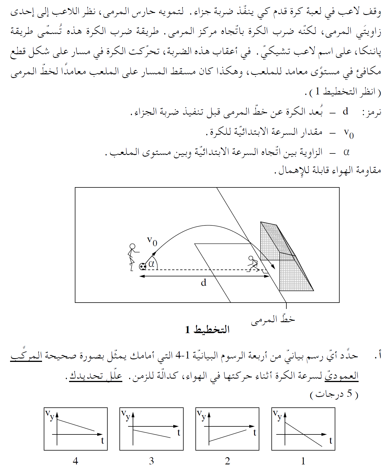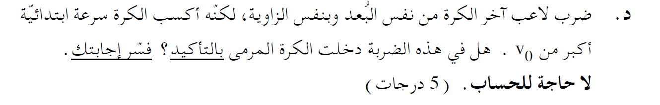 هذا الارتفاع أصغر من ارتفاع المرمى h ، وبالتالي وفقًا لمعطيات السؤال ، تدخل الكرة المرمى.