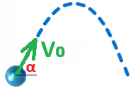 בכיוון האנכי - הגוף נע בזריקה אנכית כלפי מעלה. המהירות ההתחלתית של הזריקה האנכית שווה לרכיב מהירות הזריקה בכיוון האנכי «math xmlns=¨http://www.w3.org/1998/Math/MathML¨»«mstyle mathsize=¨20px¨»«msub»«mi mathvariant=¨bold-italic¨ mathcolor=¨#0000FF¨»V«/mi»«msub mathcolor=¨#0000FF¨»«mn mathvariant=¨bold¨»0«/mn»«mi mathvariant=¨bold¨»Y«/mi»«/msub»«/msub»«/mstyle»«/math».
