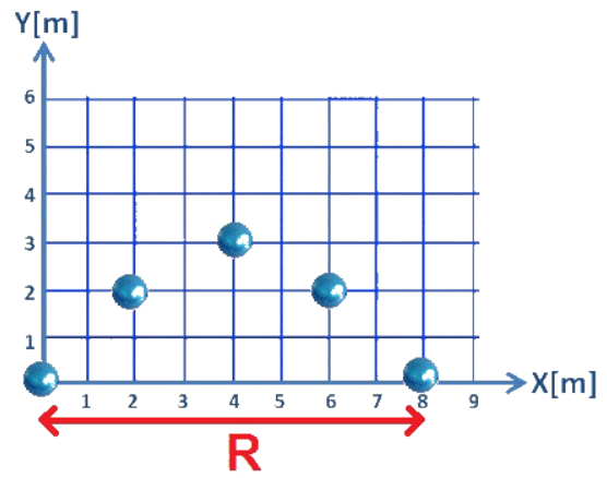 «math xmlns=¨http://www.w3.org/1998/Math/MathML¨»«mstyle mathsize=¨20px¨»«mi mathvariant=¨bold¨ mathcolor=¨#0000FF¨»R«/mi»«mo mathvariant=¨bold¨ mathcolor=¨#0000FF¨»=«/mo»«mfrac mathcolor=¨#0000FF¨»«mrow»«msup»«msub»«mi mathvariant=¨bold¨»V«/mi»«mn mathvariant=¨bold¨»0«/mn»«/msub»«mn mathvariant=¨bold¨»2«/mn»«/msup»«mo mathvariant=¨bold¨»§#183;«/mo»«mi mathvariant=¨bold¨»sin«/mi»«mo mathvariant=¨bold¨»(«/mo»«mn mathvariant=¨bold¨»2«/mn»«mi mathvariant=¨bold¨»§#945;«/mi»«mo mathvariant=¨bold¨»)«/mo»«/mrow»«mi mathvariant=¨bold¨»g«/mi»«/mfrac»«mo mathvariant=¨bold¨ mathcolor=¨#0000FF¨»=«/mo»«mfrac mathcolor=¨#0000FF¨»«mrow»«mn mathvariant=¨bold¨»9«/mn»«mo mathvariant=¨bold¨».«/mo»«msup»«mn mathvariant=¨bold¨»33«/mn»«mn mathvariant=¨bold¨»2«/mn»«/msup»«mo mathvariant=¨bold¨»§#183;«/mo»«mi mathvariant=¨bold¨»sin«/mi»«mo mathvariant=¨bold¨»(«/mo»«mn mathvariant=¨bold¨»2«/mn»«mo mathvariant=¨bold¨»§#183;«/mo»«mn mathvariant=¨bold¨»56«/mn»«mo mathvariant=¨bold¨».«/mo»«mn mathvariant=¨bold¨»33«/mn»«mo mathvariant=¨bold¨»)«/mo»«/mrow»«mn mathvariant=¨bold¨»10«/mn»«/mfrac»«mo mathvariant=¨bold¨ mathcolor=¨#0000FF¨»=«/mo»«mfrac mathcolor=¨#0000FF¨»«mrow»«mn mathvariant=¨bold¨»87«/mn»«mo mathvariant=¨bold¨».«/mo»«mn mathvariant=¨bold¨»04«/mn»«mo mathvariant=¨bold¨»§#183;«/mo»«mn mathvariant=¨bold¨»0«/mn»«mo mathvariant=¨bold¨».«/mo»«mn mathvariant=¨bold¨»922«/mn»«/mrow»«mn mathvariant=¨bold¨»10«/mn»«/mfrac»«mo mathvariant=¨bold¨ mathcolor=¨#0000FF¨»=«/mo»«mn mathvariant=¨bold¨ mathcolor=¨#0000FF¨»8«/mn»«mo mathvariant=¨bold¨ mathcolor=¨#0000FF¨».«/mo»«mn mathvariant=¨bold¨ mathcolor=¨#0000FF¨»03«/mn»«mi mathvariant=¨bold¨ mathcolor=¨#0000FF¨»m«/mi»«/mstyle»«/math»