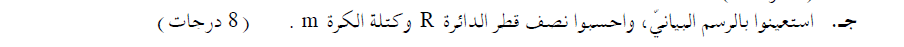 من هذين التعبيرين يمكن حساب كتلة الكرة ونصف قطر الدائرة.