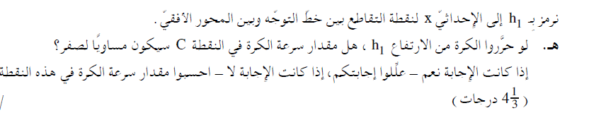 3. قيمة الارتفاع في نقطة التقاطع على المحور الأفقي هي قيمة الارتفاع التي يجب أن تتحرر منها الكرة بحيث تكون القوة العمودية في النقطة C أكبر من الصفر.