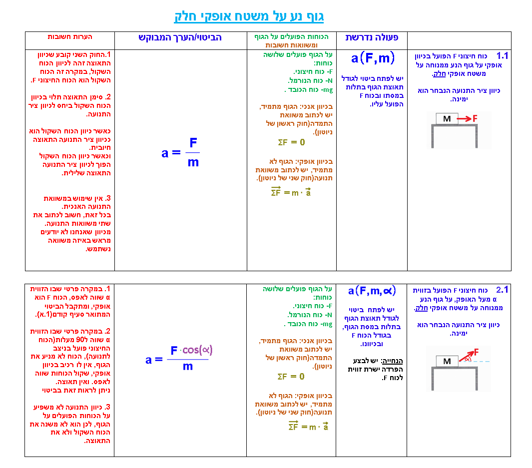1. גוף נע על משטח אופקי חלק: