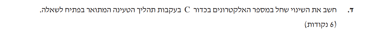 נחשב מביטוי זה את השינוי במספר האלקטרונים: