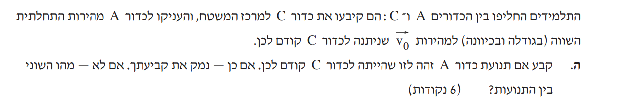 1. התרשים בשאלה מתאר את תנועת כדור C במבט על (מבט מלמעלה). לא נוח לתאר את הכוחות הפועלים על הכדור במבט על