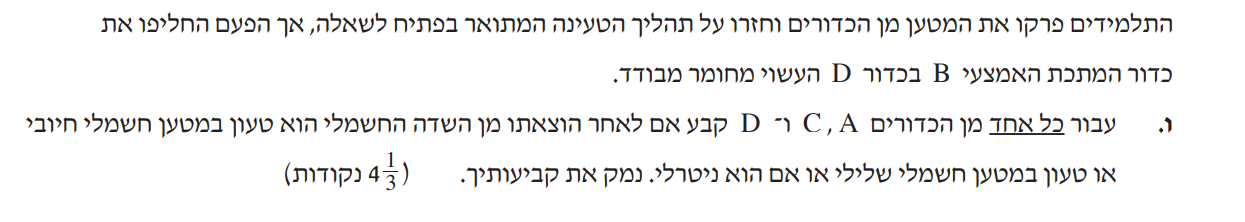אם התלמידים לא ירחיקו את הכדורים בבת אחת, שלושת הכדורים יהיו טעונים. כדור B לא יהיה ניטרלי.