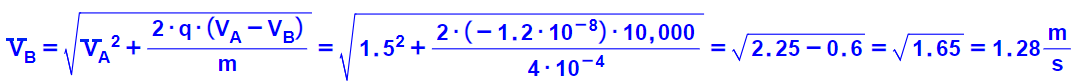 לכן, הגוף הטעון מגיע לאותה המהירות (1.28 מטר לשנייה) במרחק קטן יותר בתנועת המטען מנקודה A לנקודה C.
