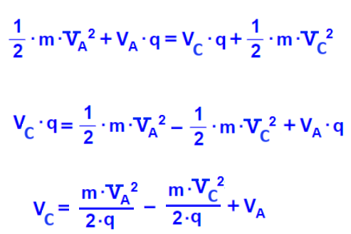על הגוף פועל רק הכוח החשמלי , לכן האנרגיה המכנית נשמרת. נחשב את הפוטנציאל בנקודה C , בעזרת משוואת שימור האנרגיה: