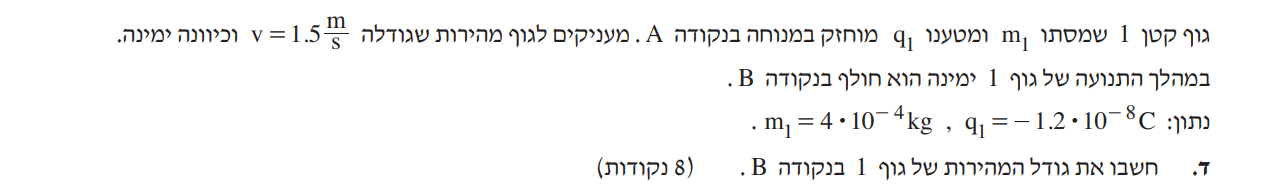 1. כאשר מטען נע בשדה משתנה (שדה רדילי) ניתן לחשב את מהירות המטען רק בעזרת שימור האנרגיה.