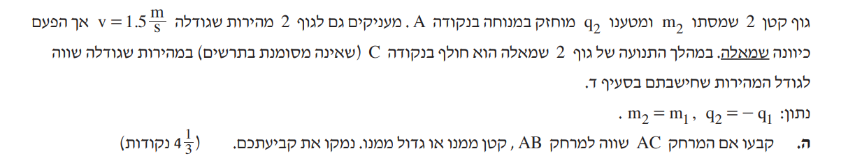 2. כדי ללמוד על המרחקים AC ו- AB יש להבין היטב את תנועת המטען בסעיף זה ואת תנועת המטען בסעיף הקודם.